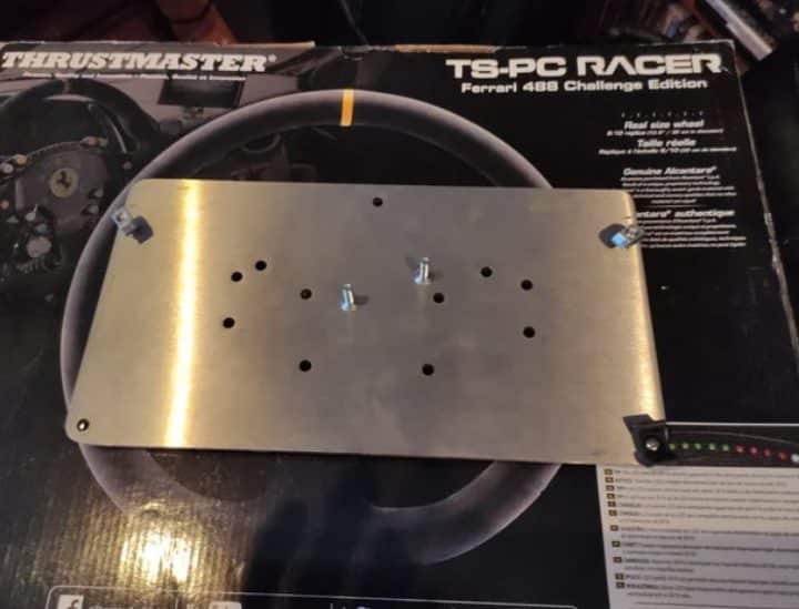 Bandeja para cockpits de aluminio con los taladros para Thrustmaster y más volantes. Muy fuerte y resistente