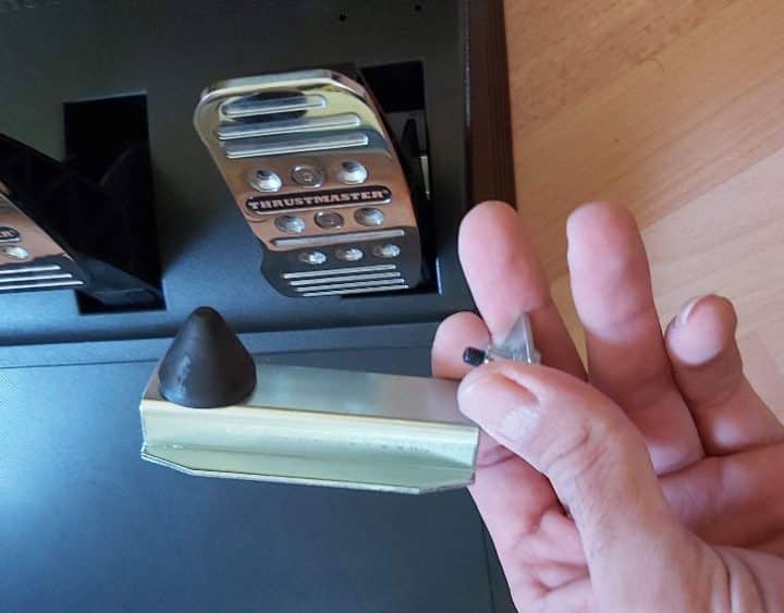 En la base de los pedales como se aprecia en la imagen tiene unos pequeños orificios por donde lo tenia sujeto al cockpits.
