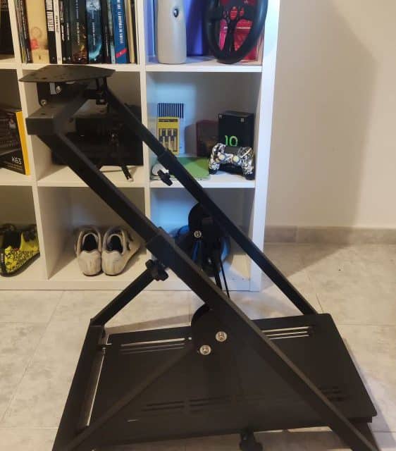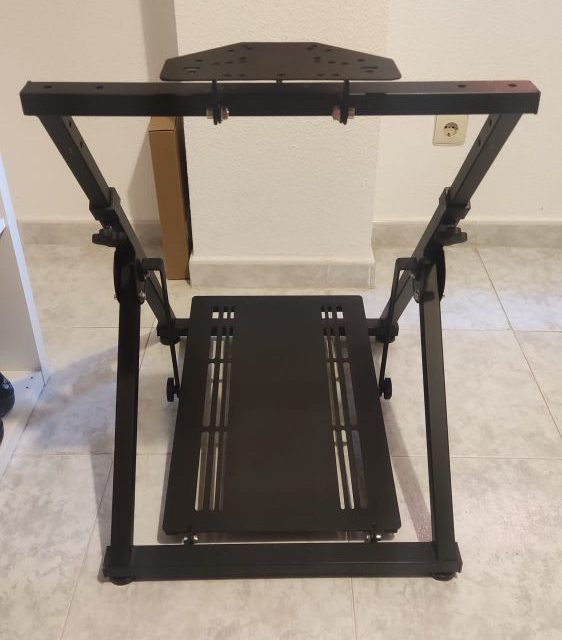 Soporte súper rígido para volante, pedales y cambio, compatible con la mayor parte de los volantes de Thrustmaster, Fanatec y Logitech. No es el que se vende en Amazon es el modelo superior, lo compré directamente a la marca a Reino Unido. Me sorprendió la rigidez, estaba harto de que se moviera mi T300 cuando lo tenía enganchado con el brazo que viene de serie, a mí escritorio. Ajustable altura y diferentes ángulos del volante y pedales. Aunque en las fotos no aparece incluye también el soporte para palanca de cambio. Es totalmente plegable, súper útil cuando lo quieres guardar, lo pones detrás de la puerta, debajo de la cama, etc…