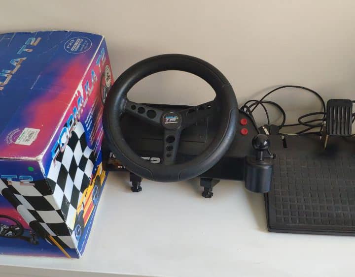 Vendo mi primer volante de simracing el mítico Fórmula T2 de Thrustmaster del que hizo un review la prestigiosa web Racedepartement hace una temporada, considerándolo como uno de los mitos de nuestro simracing.