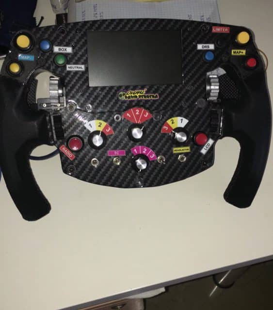 Volante f1 con display, multitud de botones y rotaris, levas de pololo simracing, empuñaduras de piel Alcántara. El display funciona con cualquier Dashboard del mercado actual. Lo vendo por que no lo uso. Se entrega con maleta aluminio de transporte.