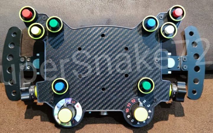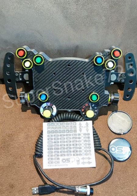 Volante OSP WR1 Panel Hud Volante WR1 con tapas de aluminio con 31 funciones, levas magneticas de aluminio, 8 Botones NKK de alta calidad, 4 Rotary encoders con pulsador, posibilidad de emblemas intercambiables.
